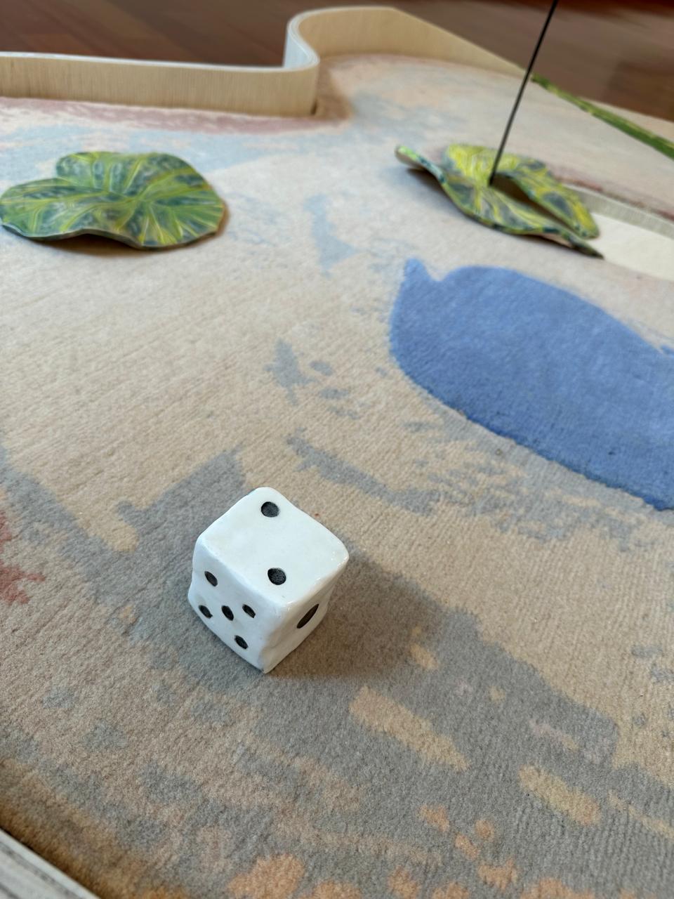 The textile works were made in collaboration between Alejandra Seeber and Lalana rugs and are part of a mini-golf art installation, in which visitors are invited to play as they walk through the show. This mid-career survey, curated by Aimé Lukin, includes works from the 90s as well as newly created pieces by Alejandra Seeber.